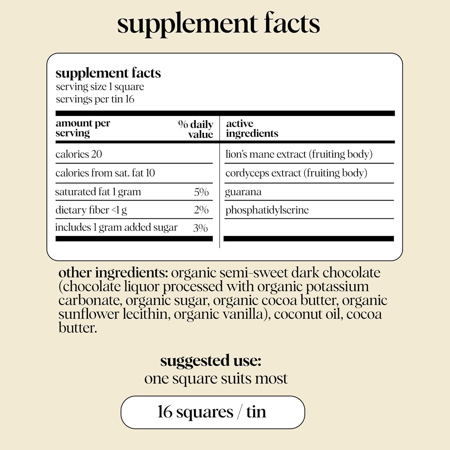 enjoy one square daily, in the morning or afternoon, for an instant boost of natural energy and focus. With each use, you’re supporting your brain’s vitality, day by day.