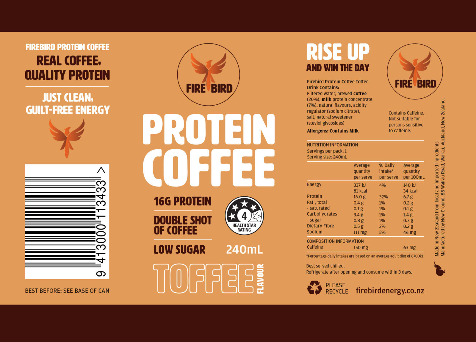Introducing Firebird Protein Coffee – a bold and satisfying coffee-protein drink in a convenient 240ml can.