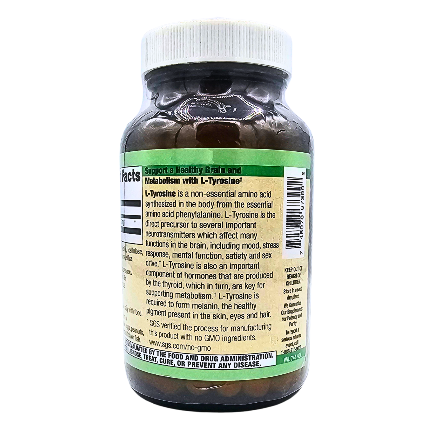 A conditionally essential amino acid, L-Tyrosine is one of the most important elements in maintaining neurotransmitter balance in the brain. Though the body has the ability to synthesize enough L-Tyrosine from phenylalanine to meet its daily physiological demands, in some instances supplementation with L-Tyrosine may be necessary. Since L-Tyrosine is an important cofactor in the production of the neurotransmitters associated with proper mood - norepinephrine and dopamine - L-Tyrosine may be beneficial to those seeking to stabilize their frame of mind. Similarly, those who cannot consume phenylalanine may benefit from L-Tyrosine supplementation. L-Tyrosine can also be useful in promoting nerve and thyroid health.